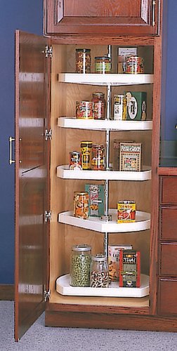 -. Feature : 5-22in D-Shaped Pantry Susan Set WH / Used with 24" deep pantries / White Only / Top and bottom mount / Chrome plated beauty ring included