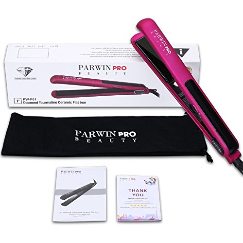 PARWIN PRO Diamond Tourmaline Ceramic Flat Iron PINK PTC Heating, Temperature Control, 1 Inch Ceramic Floating Plate