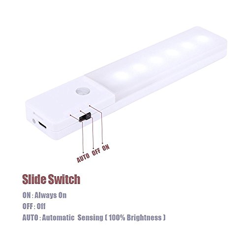 - Portable Sleek design.3 modes settings via the ON/AUTO/OFF switch; ON for always light when you need, like reading or working; AUTO for motion-sensitive mode. OFF- saves energy and battery life.