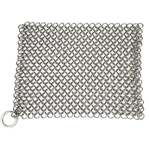 DURABILITY - This cast iron skillet cleaner is handcrafted by Premium 316L Stainless steel, It is ideal for cleaning all your cast iron cookware, such as cast iron pans , pre seasoned cast iron , skillets, dutch ovens , camp chef griddles , waffle irons and so on . Boasting unmatched durability and built to last as long as your cast iron products. Each chainmail ring is meticulously handcrafted with the highest quality food grade stainless steel in the industry.