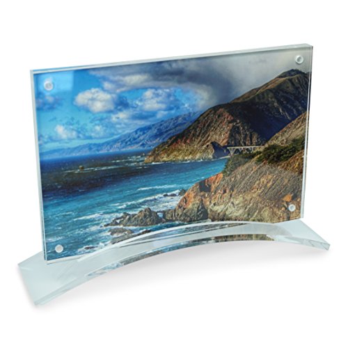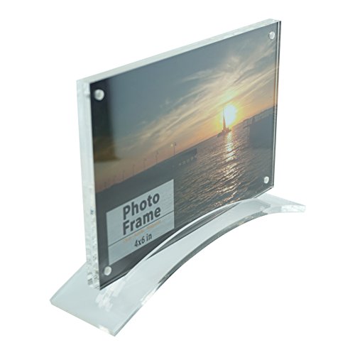STURDY YET SWITCHABLE: Durable magnets make assembly a breeze, with no difficult parts or additional tools needed to display your photos. Two pieces of 4x6 clear acrylic come together with the curved base and showcase your photos flawlessly.