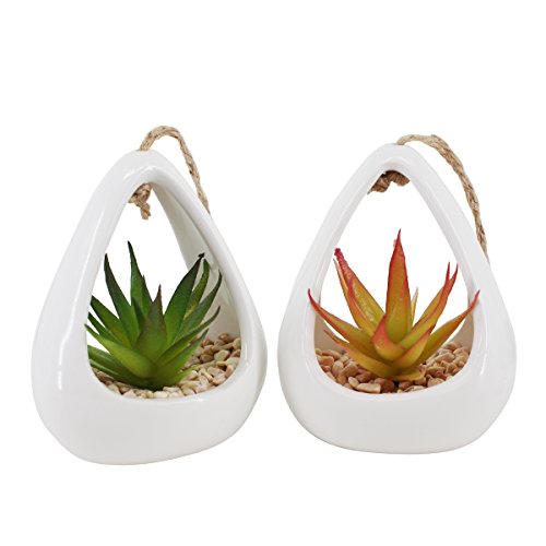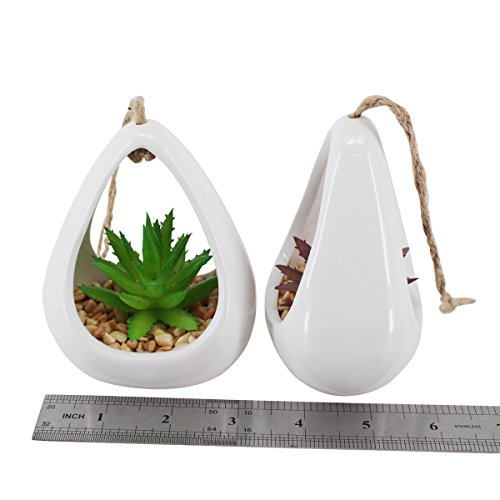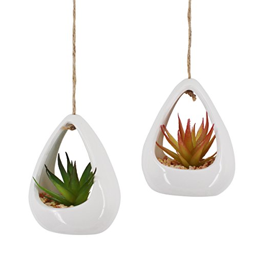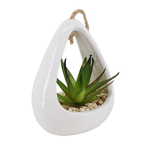 Greatflower Hanging Plants Tear-Shaped Ceramic Pot with Artificial Succulent