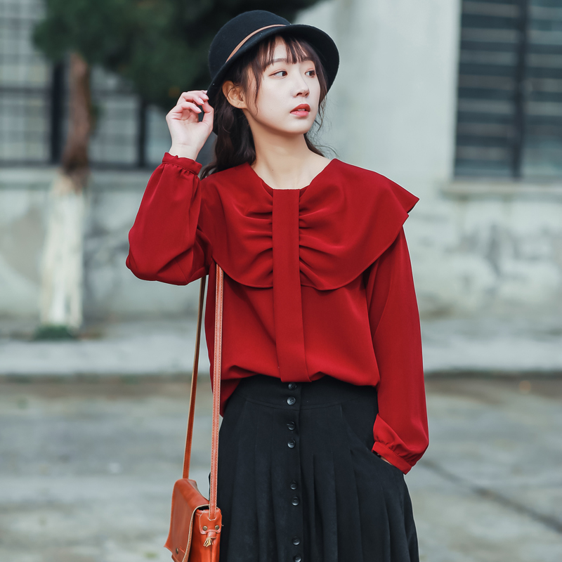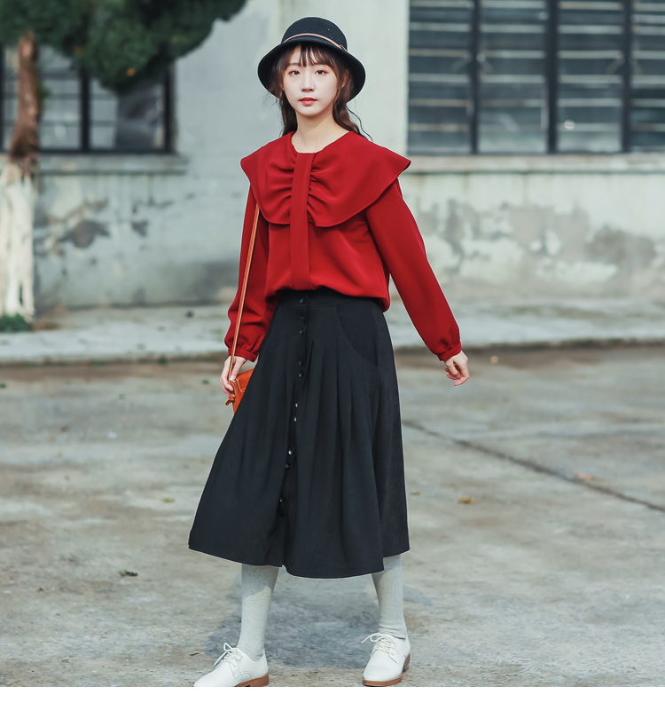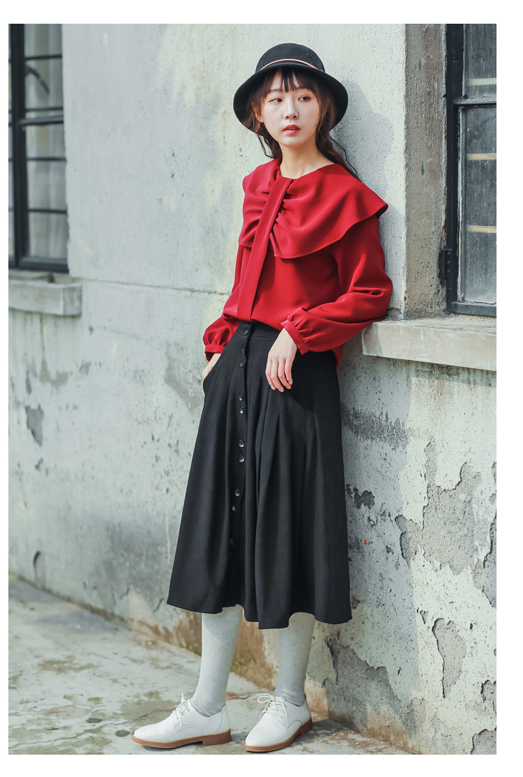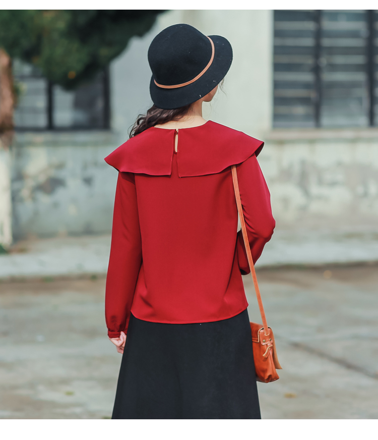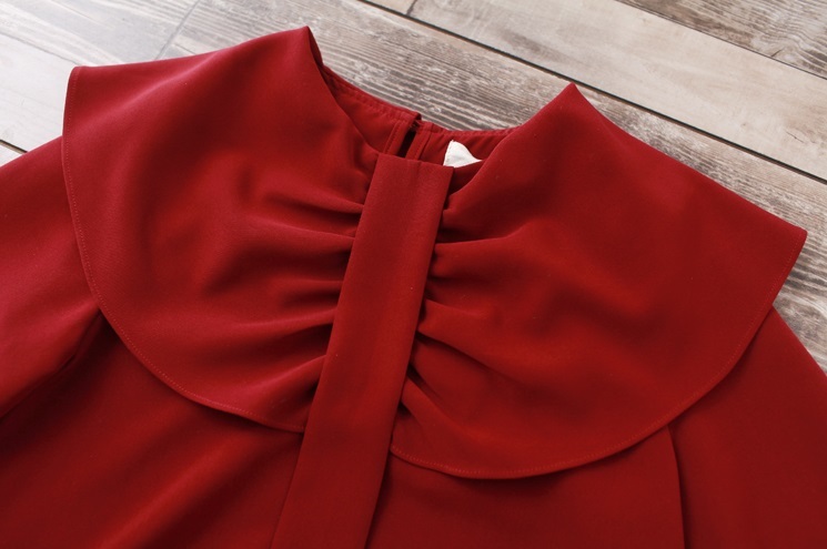 大きめフリルで作られた襟と程よくゆとりのあるサイズ感でレトロガーリーな雰囲気に◎
