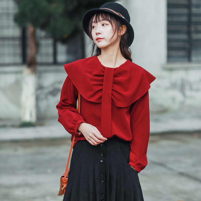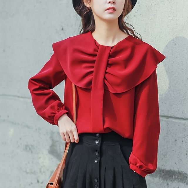 華やかで印象的な襟のデザインで、1枚着でも存在感を放つブラウスです☆