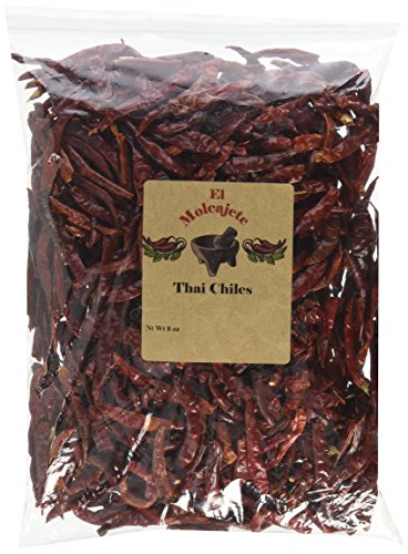Thai Whole Dried Chile -8 OZ Resealable Bag - El Molcajete Brand (8 Ounce)