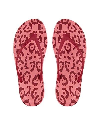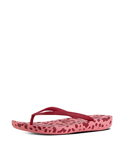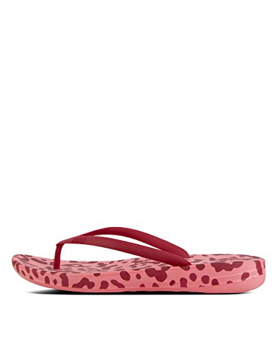 FitFlop Womens iQushion Ergonomic Flip-Flops Sandal, Classic Red Leopard Print, 8.5 B(M) US