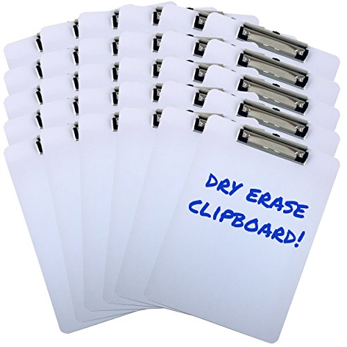 Clipboard Dry Erase Surface 9'' x 12.5'' Letter Size Low Profile Clip Whiteboard (Pack of 30)
