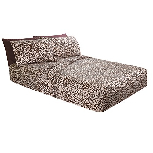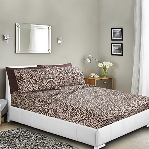 Printed Bed Sheet Set, Queen - Leopard - By Clara Clark, 6 Piece Bed Sheet 100% Soft Brushed Microfiber, Hypoallergenic, With Deep Pocket Fitted Sheet, 1800 Luxury Bedding Collection.