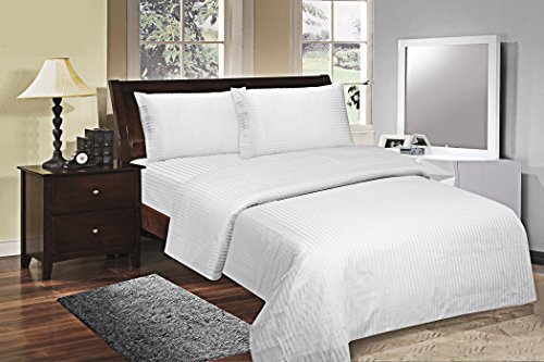 Bonne Nuit 300 Thread Count Hotel Collection Luxury Bedding Bed Sheets - Bestseller- Super Sale 100% Cotton Sateen - 17" Deep Pocket Wrinkle Resistant Sheet Set-Queen Stripe White