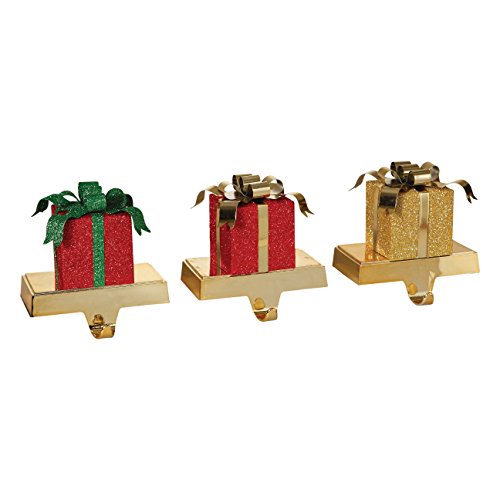 Sterling 5" Red & Gold Glitter Metal Presents Stocking Holder, 3 Asst