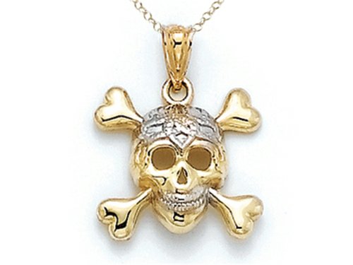 -. Binding : Jewelry -. Brand : Finejewelers -. Department : womens -. Feature : Guaranteed Authentic from the Finejewelers Collection designer line / Chain in a matching metal will be included / Width: 17.00 mm Length: 21.00 mm -. Label : Finejewelers -. Manufacturer : Finejewelers -. Model : CG17343 -. MPN : CG17343 -. PartNumber : CG17343 -. ProductGroup : Jewelry -. ProductTypeName : FASHIONNECKLACEBRACELETANKLET -. Publisher : Finejewelers -. Studio : Finejewelers -. Title : 14kt Yellow Gold and Silver Skull and Crossbones Pendant Chain Included