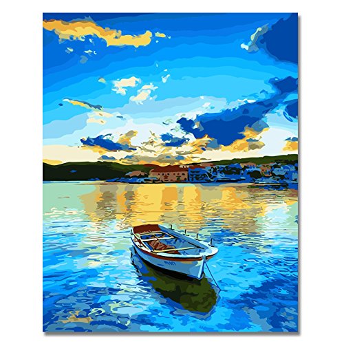 Rihe Paint by Numbers Kits Diy Oil Painting for Adults Kids Beginner - Lakeside Village 16 x 20 inch with Brushes and Acrylic Pigment (Without Frame)