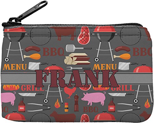 This design features pigs, cows, grills, and more on a simple grey background. There are wonderful contrasting reds, oranges, and charcoals in this macho design. The ribbon across the middle fits your personalization right in the middle.