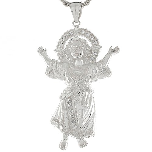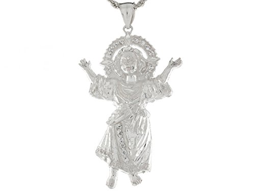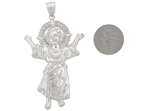 -. Title : Sterling Silver White CZ Baby Jesus 4.57cm Religious Pendant Charm