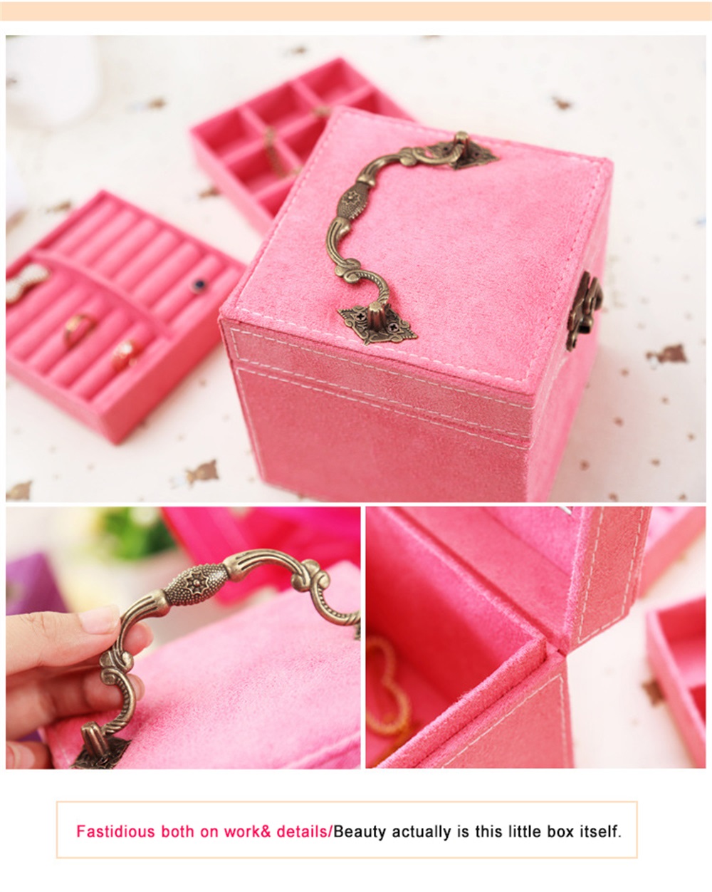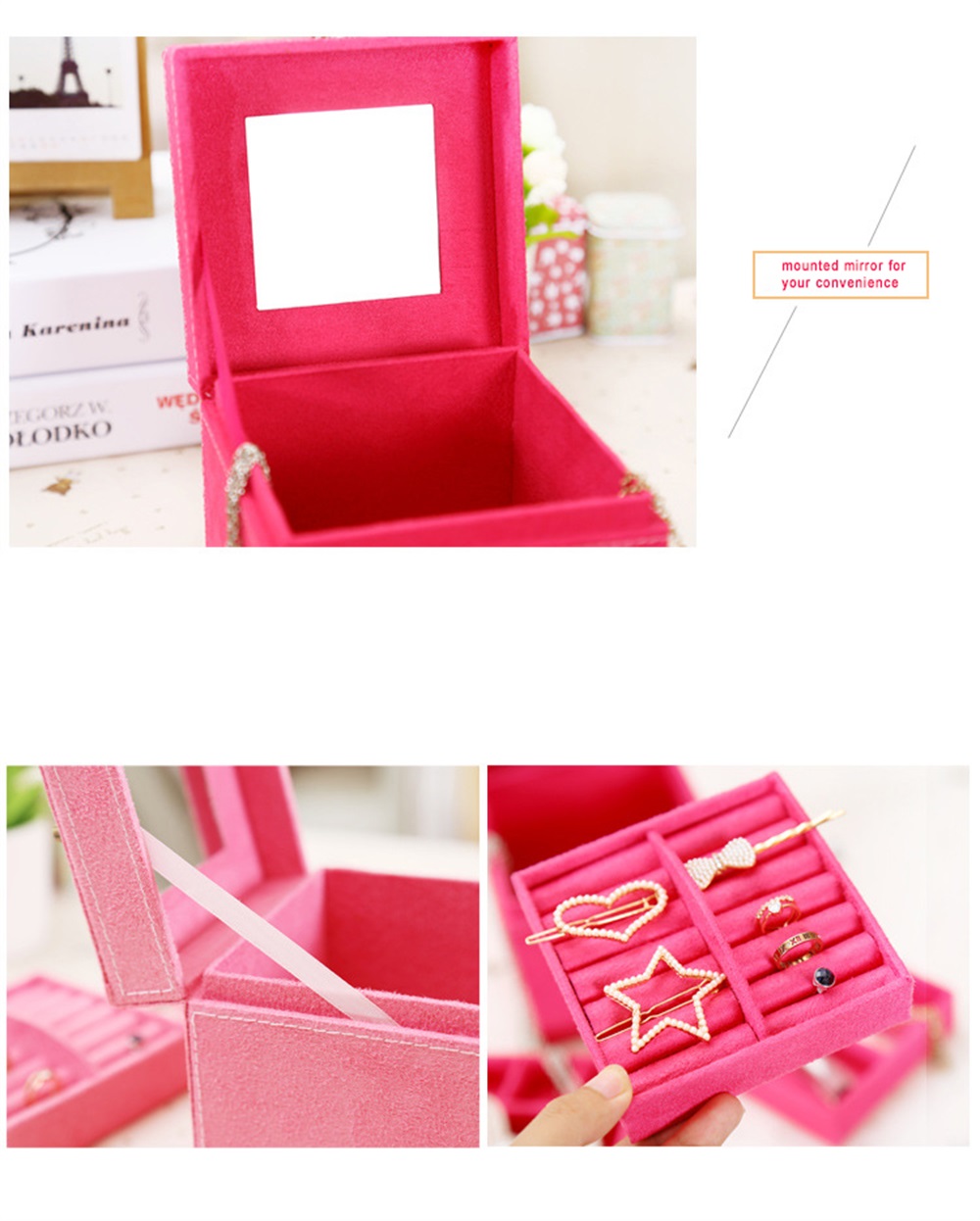 USEFUL DECORATION AS POSSIBLE so we add a delicate sized mirror inside the box so when you open it you may feel a little of fulfillment of the beauty since a bright reflection on your exquisite accessories.
