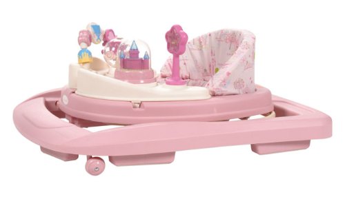 -. Feature : 4 princesss-themed toys: magic wand teether, musical light-up castle, carriage spinner, ballgown bead rail / Two removable, swing-open activity trays / Oversized snack and toy area / 2-position height adjustment / Surdy wheels for floors and carpets