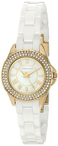Anne Klein Women's AK/2204WTGB Swarovski Crystal Accented White Ceramic Bracelet Watch