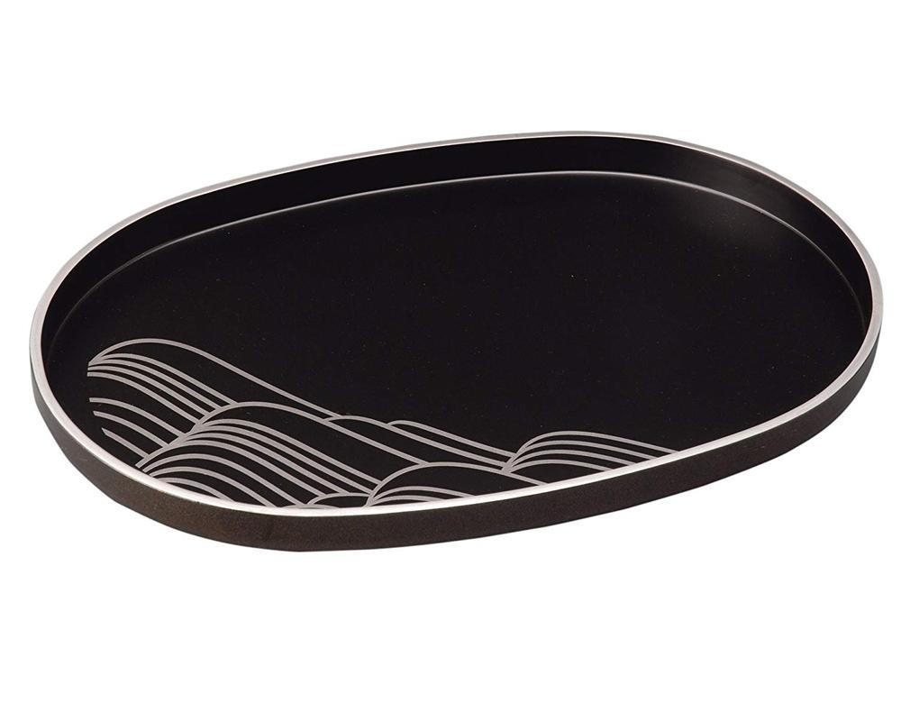 黒塗りにシルバーの波模様が映える小判型のお盆です。