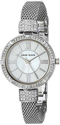 Watch Sizing Guide Bring an ultimately luxe addition to your ensemble with this simply dazzling watch set from Anne Klein®! Boxed set includes watch and two crystal-embellished bracelets. Stainless steel case. Silver-tone bracelet with crystal detailing and jewelry clasp closure. Round face. Three-hand analog display with quartz movement. White dial features silver-tone hands and hour markers, crystal-embellished bezel, and Anne Klein detailing. Water resistant. Display case included. Imported. Measurements: Case Height: 28 mm Case Width: 28 mm Case Depth: 7 mm Band Width: 2⁄5 in Band Circumference/Length: 7 3⁄4 in Weight: 1 ozFeature