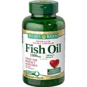 Nature's Bounty Fish Oil 2400 milligrams Double Strength Odorless, 90 Softgels Nature's Bounty Fish Oil 2400 milligrams contains EPA and DHA, two Omega-3 fatty acids that help support and maintain the health of your cardiovascular system.* Omega-3 fatty acids are considered 'good' fats important for cellular, heart and metabolic health and help maintain triglyceride levels already within a normal range.* Odor-less Fish Oil is coated to minimize the aftertaste and fish burps!Feature