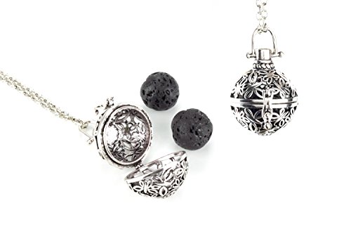 - Title : Essential Oil Diffuser Necklace Jewelry with 2 Reusable Lava Stone - Antique Style Silver Locket Pendant, 18 Inch Chain