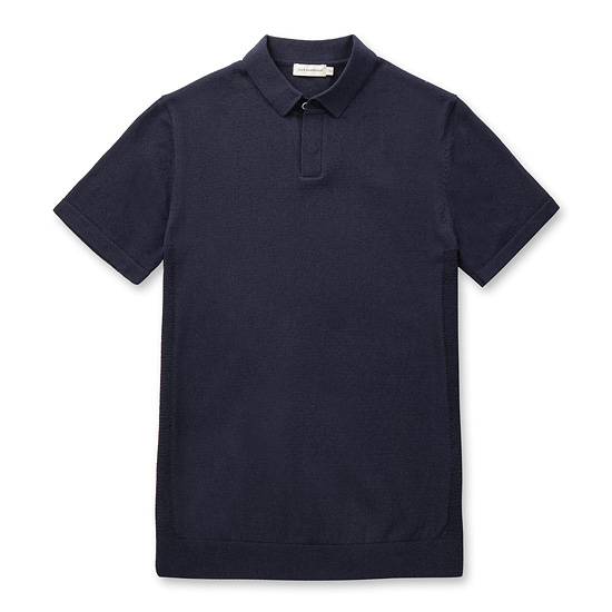 - 사이드 라인 메쉬 니트 짜임으로 포인트를 준 남성 니트 티셔츠.