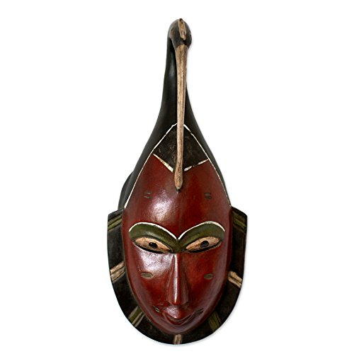 NOVICA Decorative Large Sese Wood Mask, Red 'Beautiful Marriage'