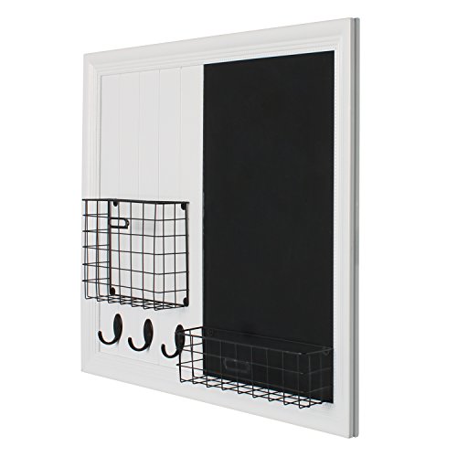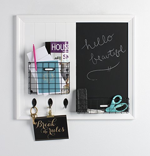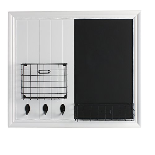 DesignOvation Darla Decorative Wood Home Organizer with Chalkboard, Wire Baskets, Key Hooks, White (209335)