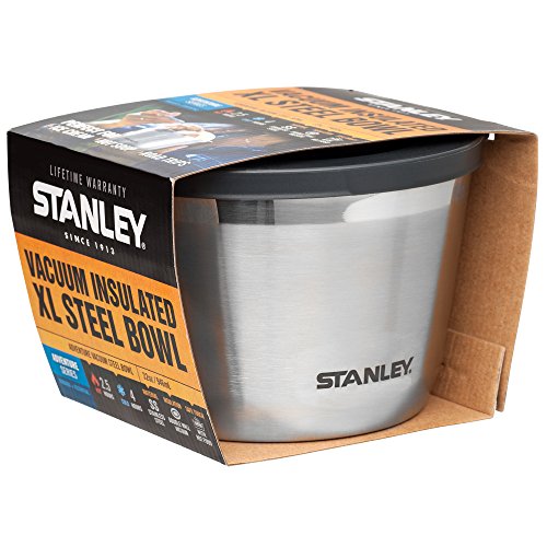 Studio : STANLEY Publisher : STANLEY Product Description Keep food hot til you're ready to eat. This food jar features Stanley Classic's superior vacuum insulation to keep grub hot for 2 hours. A tight-fit lid keeps heat in and bugs out! Vacuum insulation keeps food hot or cold 2 hours 18/8 stainless steel won't rust, naturally BPA-free Tight-fit lid keeps heat in and bugs out and lets you pack dry goods Dishwasher sa Stacking bowl bodies stack infinitely and bowls fit into lid notches for easy carrying Cool to the touch with hot food This listing is for one 18 ounce bowl fe 0