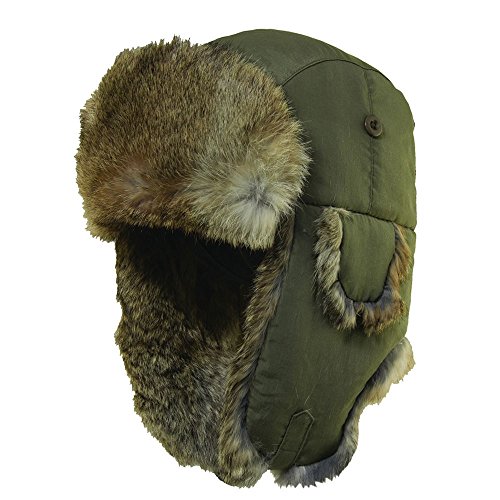 Woolrich Pilot Hat Olive with Rabbit Fur Lining (Large (59.5 cm))