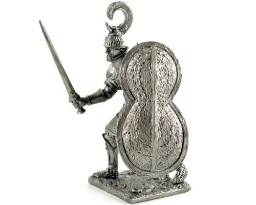-. Title : Tin toy soldiers. Mycenaean heavily armed warrior 1400 BC metal sculpture, statue. Collection 54mm (scale 1/32) miniature figurine
