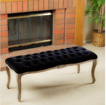 -. Title : Christopher Knight Home Contemporary Button Tufted Velvet Black Weathered Oak Finished with Uniquely Carved Legs and Frame Fabric Bench