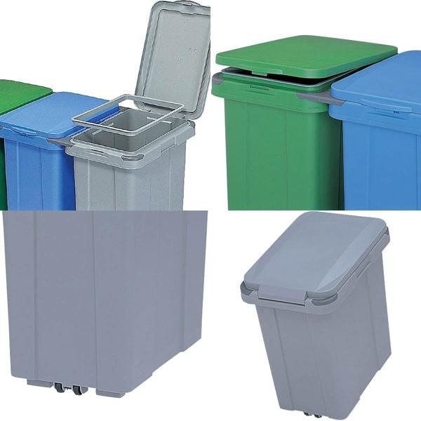 連結式分別回収容器です。ゴミ袋固定用の枠を設置。開閉式のフタは作業性抜群!ワンタッチロック機能付きで、屋外でもご利用になれます。キャスターも付いています。移動時は手前側を軽く持ち上げてください。 |