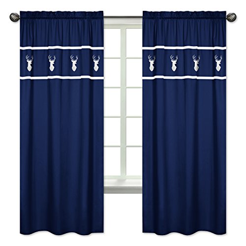 Sweet Jojo Designs 2-Piece Navy White Deer Boys Bedroom Decor Window Treatment Panels for Navy Blue, Mint and Grey Woodsy Collection
