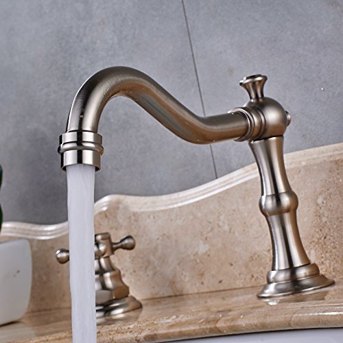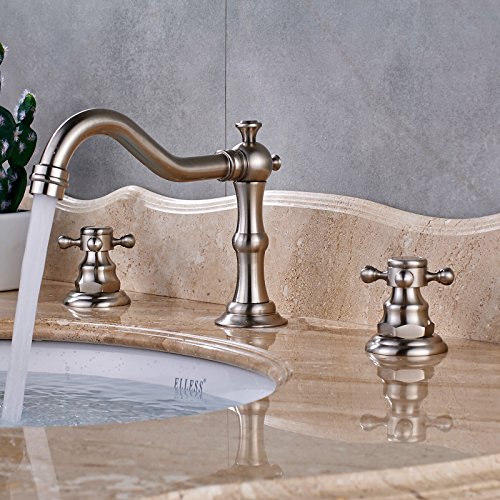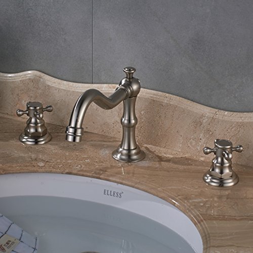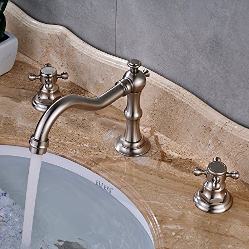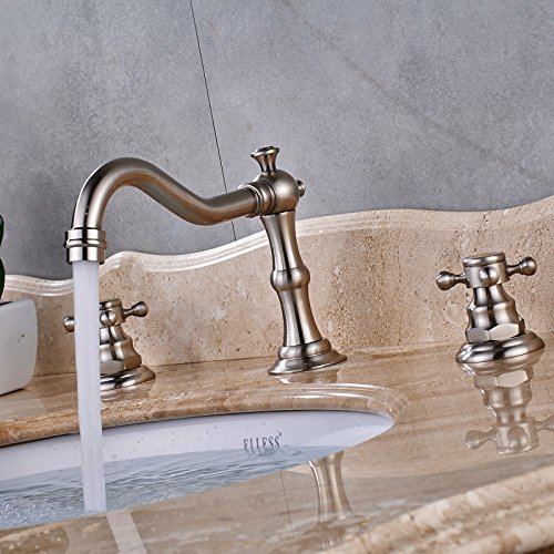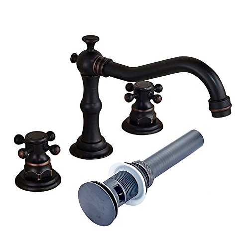 -. Title : Senlesen Deck Mounted Widespread Basin Sink Faucet Dual Corss Handles Three Holes Bathroom Hot cold Lavatory Mixer Tap with Pop Up Drain