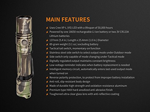 Fenix PD35 TAC 1000 Lumen Camouflage version CREE LED Tactical Flashlight (Camo) with Fenix USB rechargeable 18650 ARB-L18-2600U Li-ion battery and EdisonBright BBX3 battery case
