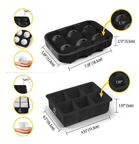 - PREMIUM QUALITY, FOOD GRADE SILICONE: Forget about plastic ice trays that leave a bad aftertaste. These top quality ice cube and sphere molds are made of 100% food grade, safe, hygienic silicone which is the best choice for you.