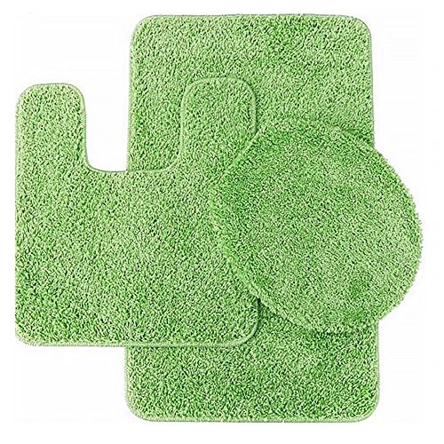 Sweet Home Collection 3 Piece Shag Bathroom Rug set Sage Bath Mat, Contour & Seat Cover,,Sage
