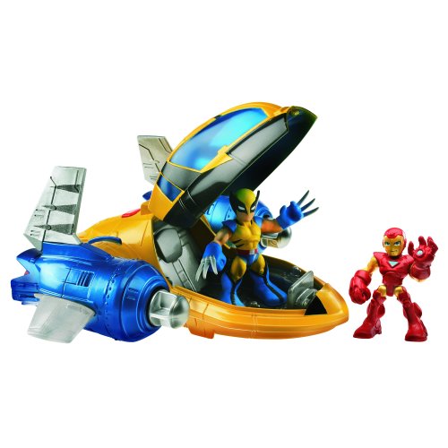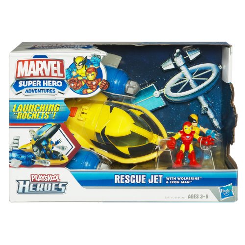 -. Binding : Toy -. Brand : Playskool -. EAN : 0653569602767 -. Feature : Iron Man and Wolverine figures fit in the cockpit of this awesome Rescue Jet / Push the button to "launch" the rockets / Rescue Jet comes with Iron Man and Wolverine figures and launching "rockets" -. IsAdultProduct : 0 -. ItemPartNumber : 329710000 -. Label : Hasbro -. Manufacturer : Hasbro -. Model : 32971 -. MPN : 32971 -. PackageQuantity : 1 -. PartNumber : 32971 -. ProductGroup : Toy -. ProductTypeName : TOYS_AND_GAMES -. Publisher : Hasbro -. Studio : Hasbro -. Title : Marvel Super Hero Adventures Playskool Heroes Rescue Jet with Wolverine & Iron Man -. UPC : 653569602767