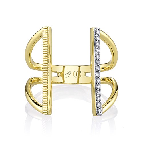 -. Feature : PRODUCT DETAILS: Gorgeous 925 Sterling Silver diamond ring, double bars open face; with a row of 14 diamonds and strié texture; 18.5MM bar length and 4MM double bar width / ETHICAL SOURCING: Gadbois Jewelry is strongly committed to ethically responsible sourcing of our products. Our suppliers strictly adhere to our high standards of quality, and the worldwide initiative, known as The Kimberley Process, which guarantees that the diamonds used in the Gadbois products are 100% conflict-free. / TEXTURE: Each Gadbois Jewelry piece is designed with our signature texturized finish called, "strié." This texturing is cast in each mold, and then each line is hand finished by our master jeweler. It is incredibly time consuming, but is what makes each Charlize Gadbois piece unique, and special. / BUY WITH CONFIDENCE: Charlize by Gadbois is backed by world renowned designer brand, Gadbois Jewelry. As an elite brand, we constantly strive for excellence in craftsmanship, design, and service. We are certain our product will be a favorite in your wardrobe for years to come. / COATING: Black rhodium with transparent ceramic nano-coating ensures that each and every piece sold is solid, sturdy, and will retain its color.