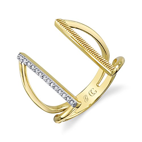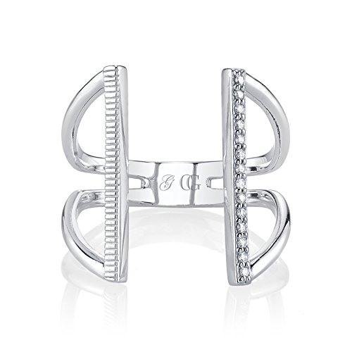 -. Title : CHARLIZE GADBOIS 925 Sterling Silver Diamond Statement Double Bar Open Adjustable Ring, (0.07 cttw, I1-I2 Clarity)
