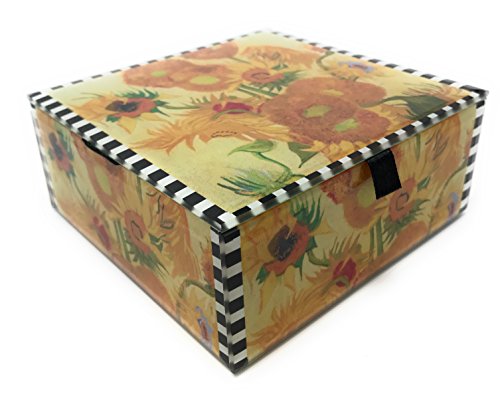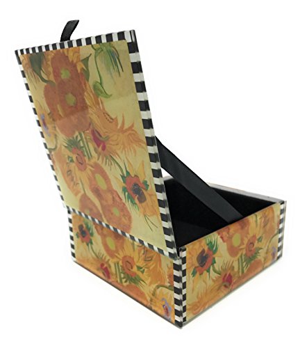 -. Title : Jewelry Box by Value Arts, Sunflowers by Van Gogh, Beveled Glass, Lined with Velvet, 4.75 Square
