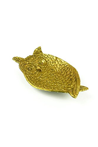 -. Feature : Pewter Owl Jewelry Dish in Gold / Dimensions:(5.75" x 3.25" x 1") / A whimsical way to store and show off jewelry and trinkets / Small yet solid / A great fit for the bedside table or chest of drawers