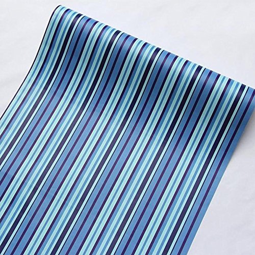 SimpleLife4U Mediterranean Blue Stripes Shelf Liner Removable Dresser Drawer Sticker Self-Adhesive Contact Paper 17.7 Inch By 9.8 Feet
