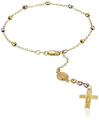 -. Title : Gold-Plated Sterling Silver Tri-Colored Rosary Bracelet, 8"