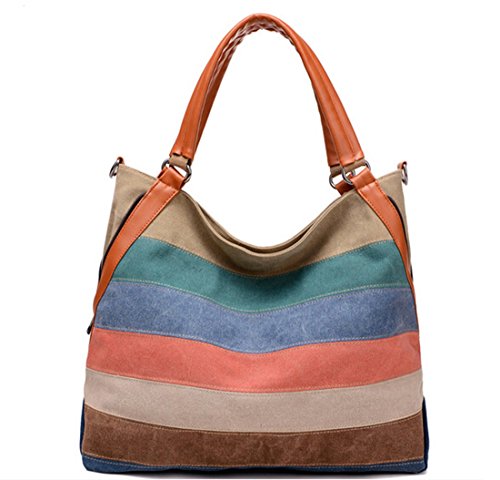 KISS GOLD(TM) Women's Canvas Multi-Color Shopper Tote Shoulder Bag