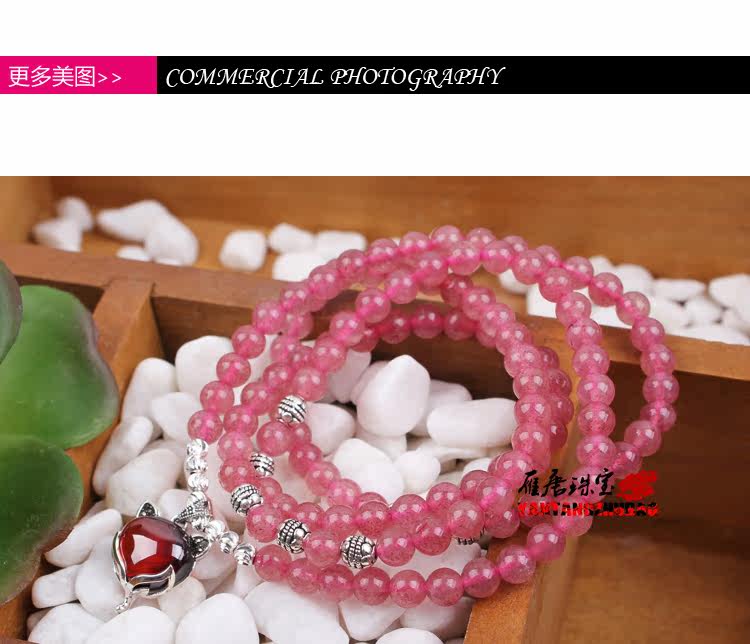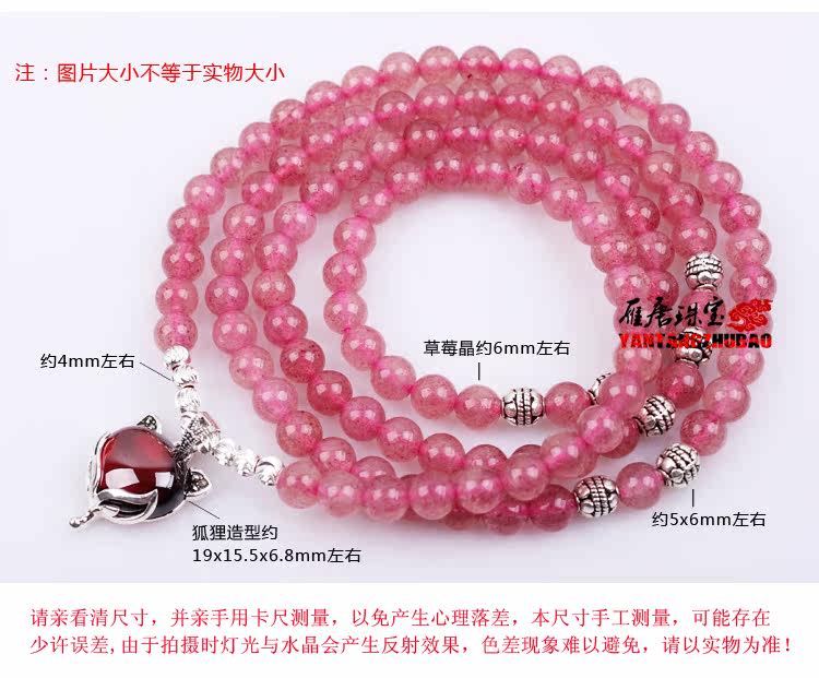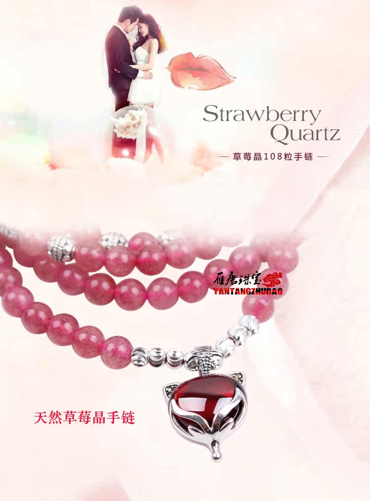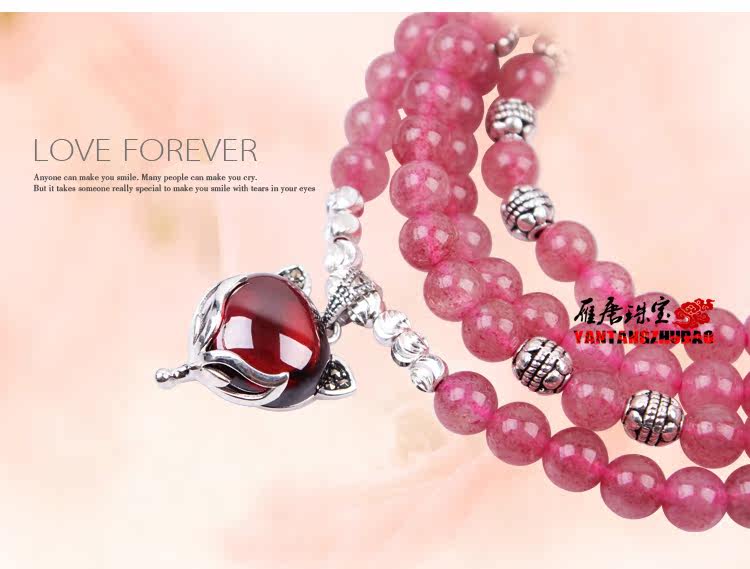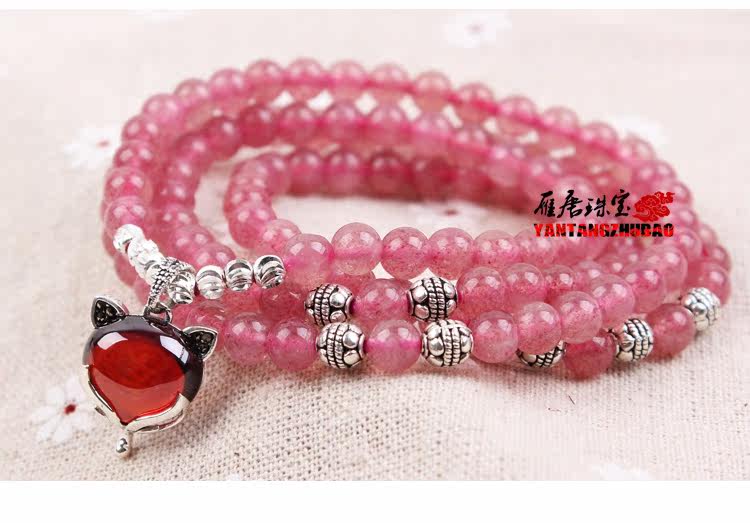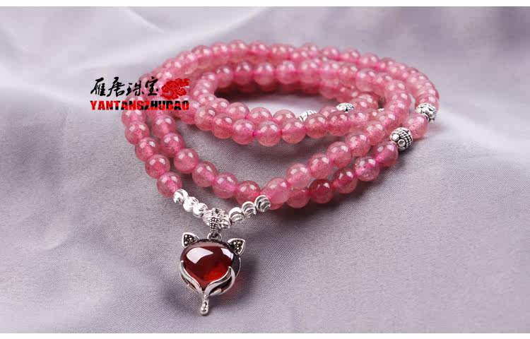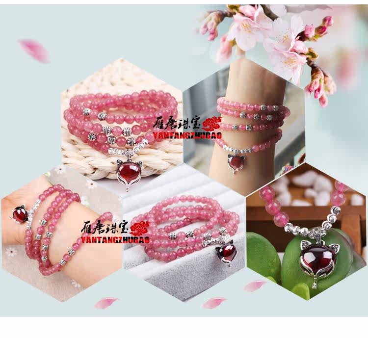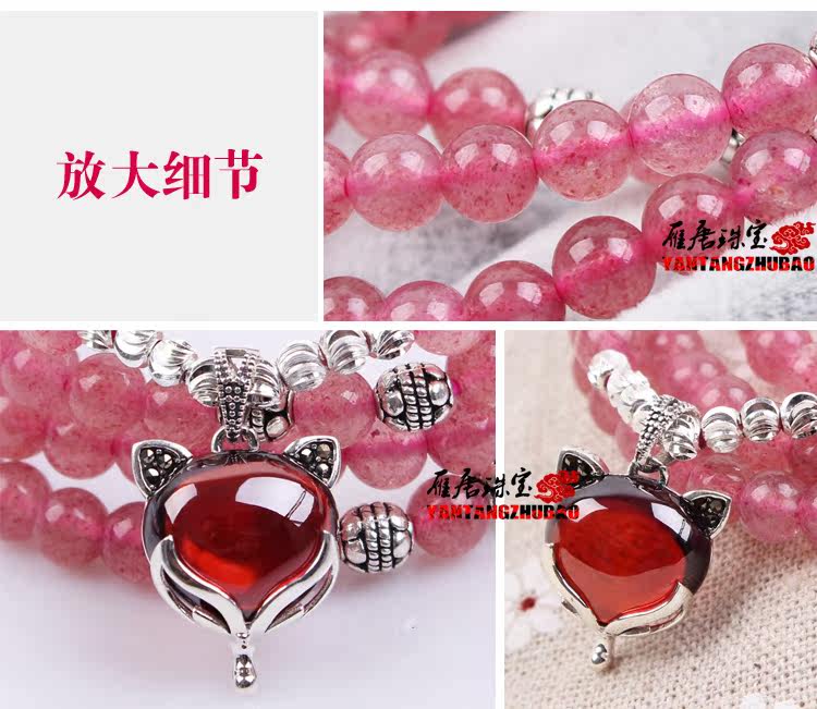 天然草莓晶手链多圈多层手串女水晶925银狐狸饰品