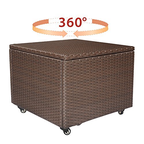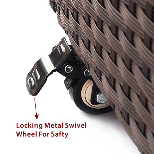 Outdoor Patio Wicker Resin Cube Storage Container, Deck Box with Locking Metal Swivel Wheels,360-Degree Pivoting Action,Medium-size, 34-Gallon (Brown)