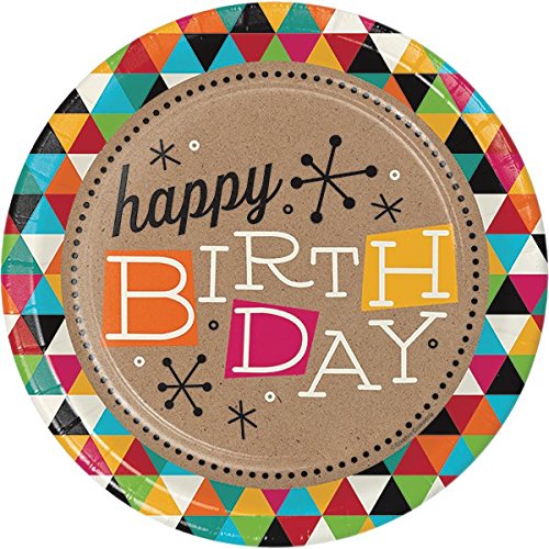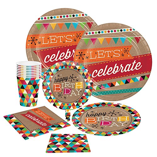 Creative Converting Birthday Kraft Party Tableware Bundle with Plates, Napkins, Cups, Balloon (16 Guests)