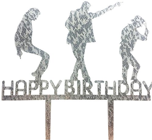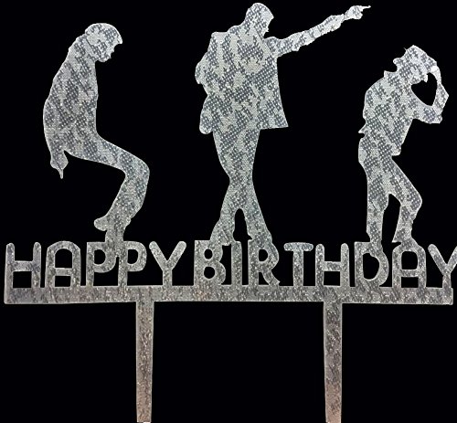 CaJaCa Happy Birthday Gold Cake Topper Michael Jackson Birthday Party (Silver)